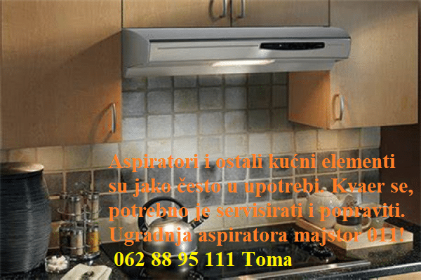 - Aspiratori i ostali kućni elementi su jako često u upotrebi. Kvaer se, potrebno je servisirati i popraviti. Ugradnja aspiratora majstor 011!